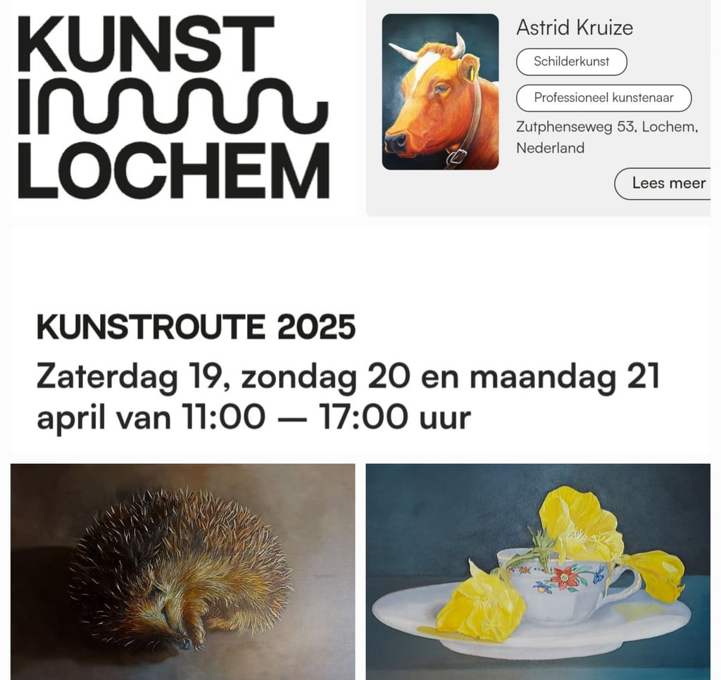 Welkom tijdens de Kunstroute Lochem Pasen 2025 Open van 11.00 uur tot 17.00 uur. Ik zie je graag!